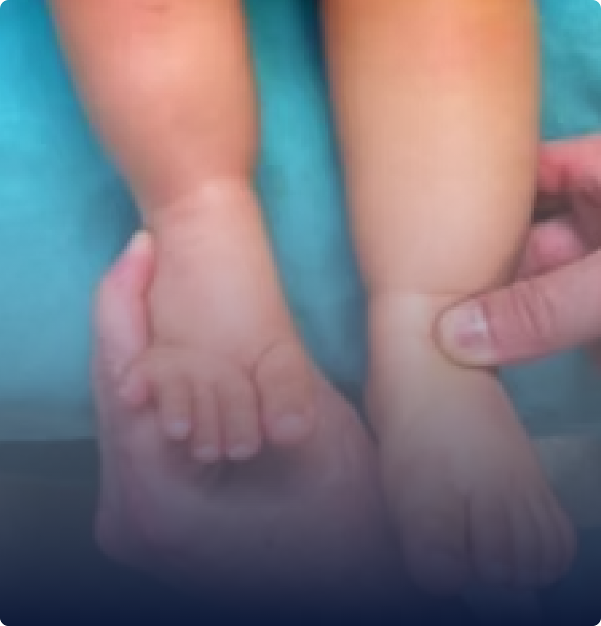 É uma malformação presente desde o nascimento em que o pé da criança nasce virado para dentro ou para baixo, dificultando o apoio correto e exigindo tratamento precoce.